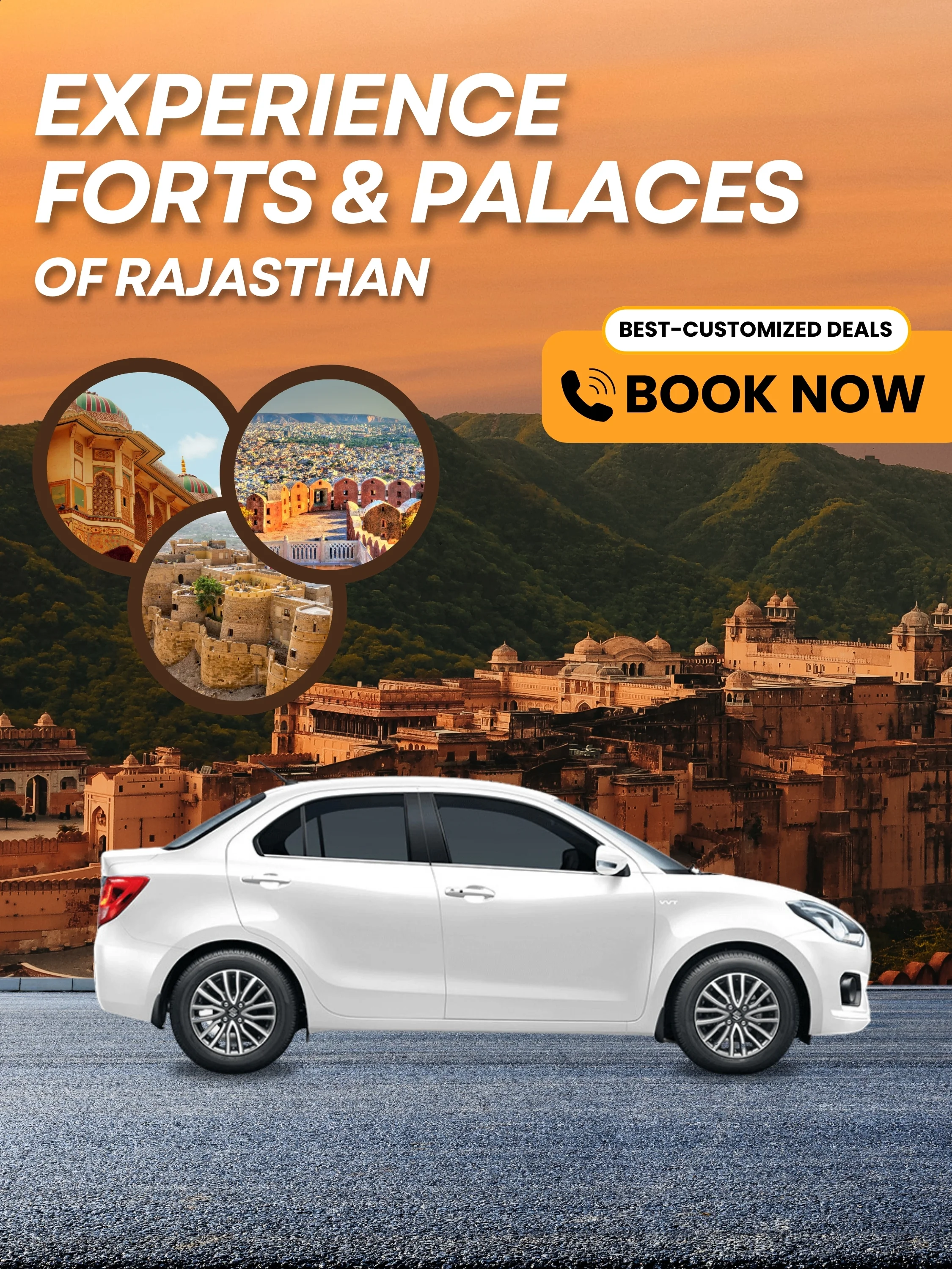 The Majestic Forts & Palaces Tour takes you on an unforgettable journey through Rajasthan's grand architectural wonders. Explore the imposing Mehrangarh Fort, the stunning Amber Fort, the opulent City Palace, and the mesmerizing Chittorgarh Fort, each echoing tales of valor and royalty. Walk through intricately designed palaces, historic courtyards, and lavish royal chambers that showcase the state's rich heritage. This tour is perfect for history enthusiasts, architecture lovers, and anyone seeking to experience the grandeur of Rajasthan's regal past.